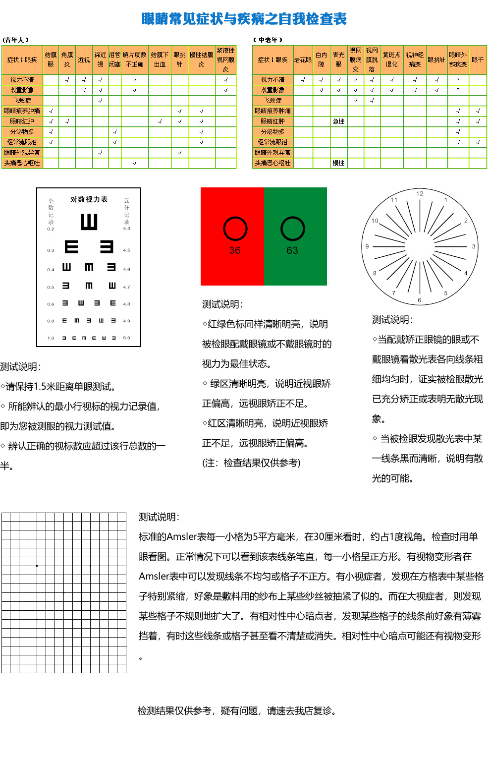 眼睛常見癥狀與疾病之自我檢查表