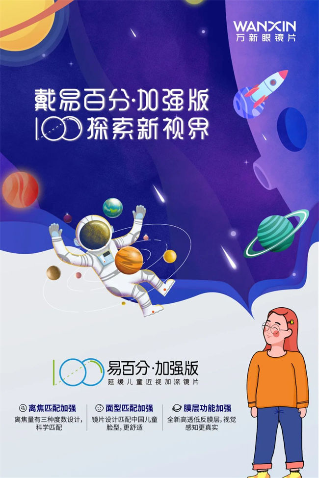 為了滿足大家日益增長的近視防控需求,萬新推出了易百分·加強(qiáng)版延緩兒童近視加深鏡片,在保留了易百分的核心功能基礎(chǔ)上,增加三大強(qiáng)化功能:離焦匹配加強(qiáng)、面型匹配加強(qiáng)、膜層功能加強(qiáng),延緩近視效果更好,近視兒童青少年的佳選!